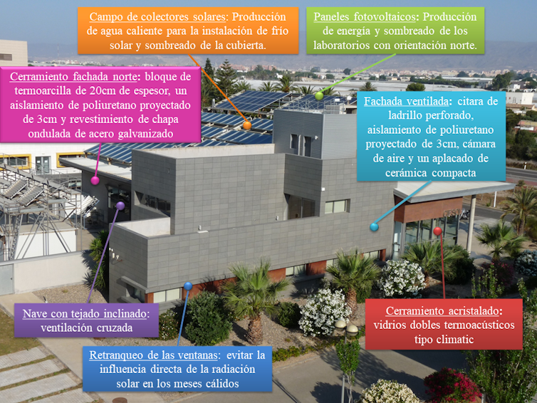 Este edificio fue diseñado y construido en el marco del proyecto ARFRISOL siguiendo criterios de arquitectura bioclimática. El objetivo principal de este proyecto era demostrar que el uso de una arquitectura bioclimática y la integración de la energía solar podía conseguir un ahorro de entre un 80 % y un 90 % de energía convencional manteniendo, al mismo tiempo, condiciones idóneas de confort para los usuarios.