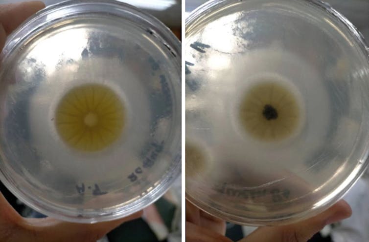 Buscamos a nuestros candidatos entre los hongos que crecían en los contenedores de aceite usado. Los cultivamos en placas de Petri en el laboratorio donde los expusimos a diferentes concentraciones de sal y de diésel. Ahí observamos cómo, al cabo de un tiempo, el diésel había desaparecido: se lo habían “comido” los hongos.