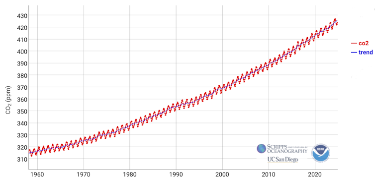 Según el informe de 2024 del Programa de las Naciones Unidas para el Medio Ambiente (PNUMA) sobre la brecha de emisiones, las emisiones de CO₂equiv han alcanzado 57,1 Gt CO₂e en 2023. Las debidas al dióxido de carbono (CO₂) fósil han sido de 37,0 ± 2 Gt CO₂, un 66 % más que en 1990. La concentración de CO₂ actual es de unos 422 ppm, frente a los 280 ppm anteriores a la Revolución Industrial.