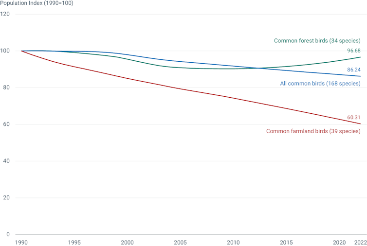 En Europa, las 168 especies de aves más comunes han disminuido, en su conjunto, un 14 % entre 1992 y 2022. Un caso particularmente preocupante es el declive del gorrión común(Passer domesticus). Esta especie está en severa regresión desde hace décadas en numerosas zonas del mundo. Las causas son múltiples y en parte desconocidas.