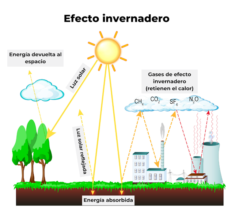 Hablamos de los gases de efecto invernadero, y su función es fundamental, ya que al atrapar el calor ayudan a mantener la temperatura adecuada para que exista vida en la Tierra. Este proceso natural se llama efecto invernadero.